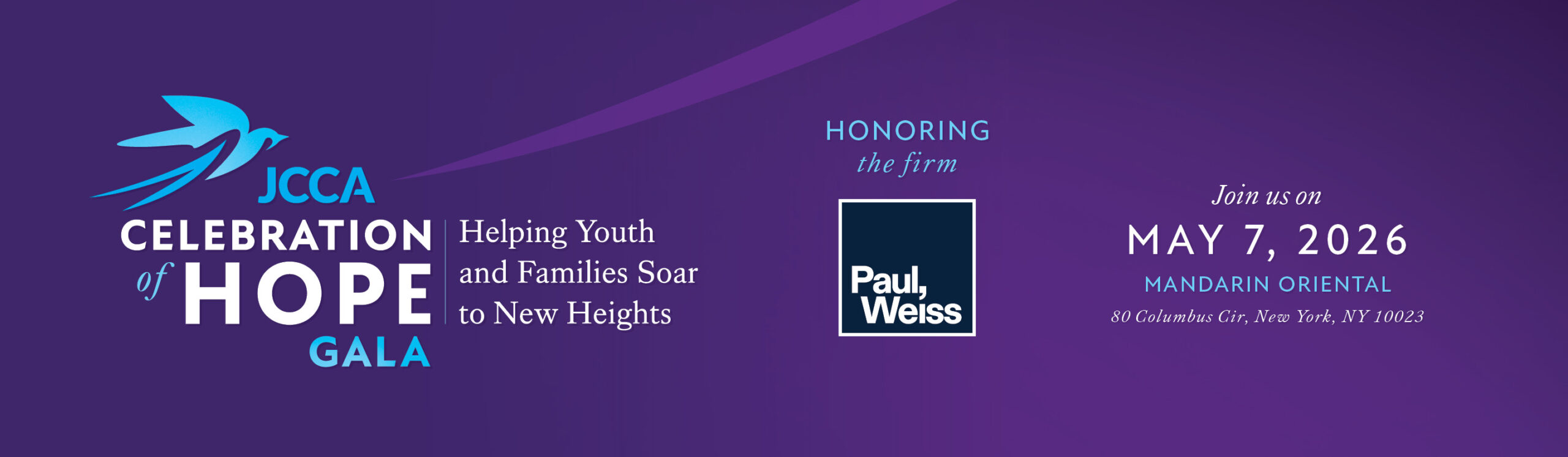 Every donation goes directly toward real-life support for children and families in JCCA’s care. The programs and services listed above are representative examples of the assistance JCCA will be able to provide to its clients and families with each donation. JCCA reserves the right to allocate funds to where they are most needed and will have the greatest impact. For information about the event, call 212-558-9914 or email hope@jccany.org.